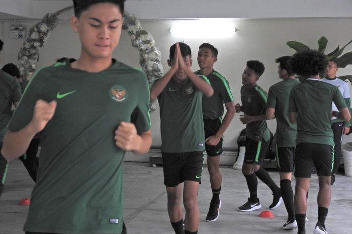Menjelang duel kontra Filipina, timnas U-18 Indonesia berlatih ringan di Hotel Becamex New City pada Senin (5/8/2019).