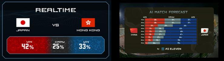 AI11は、昨年12月10~18日に韓国・釜山で開催されたサッカーの国際試合、EAFF E-1サッカー選手権2019大会で試験的に実装され、韓国や中国などアジア各国のテレビ中継で展開されたという。